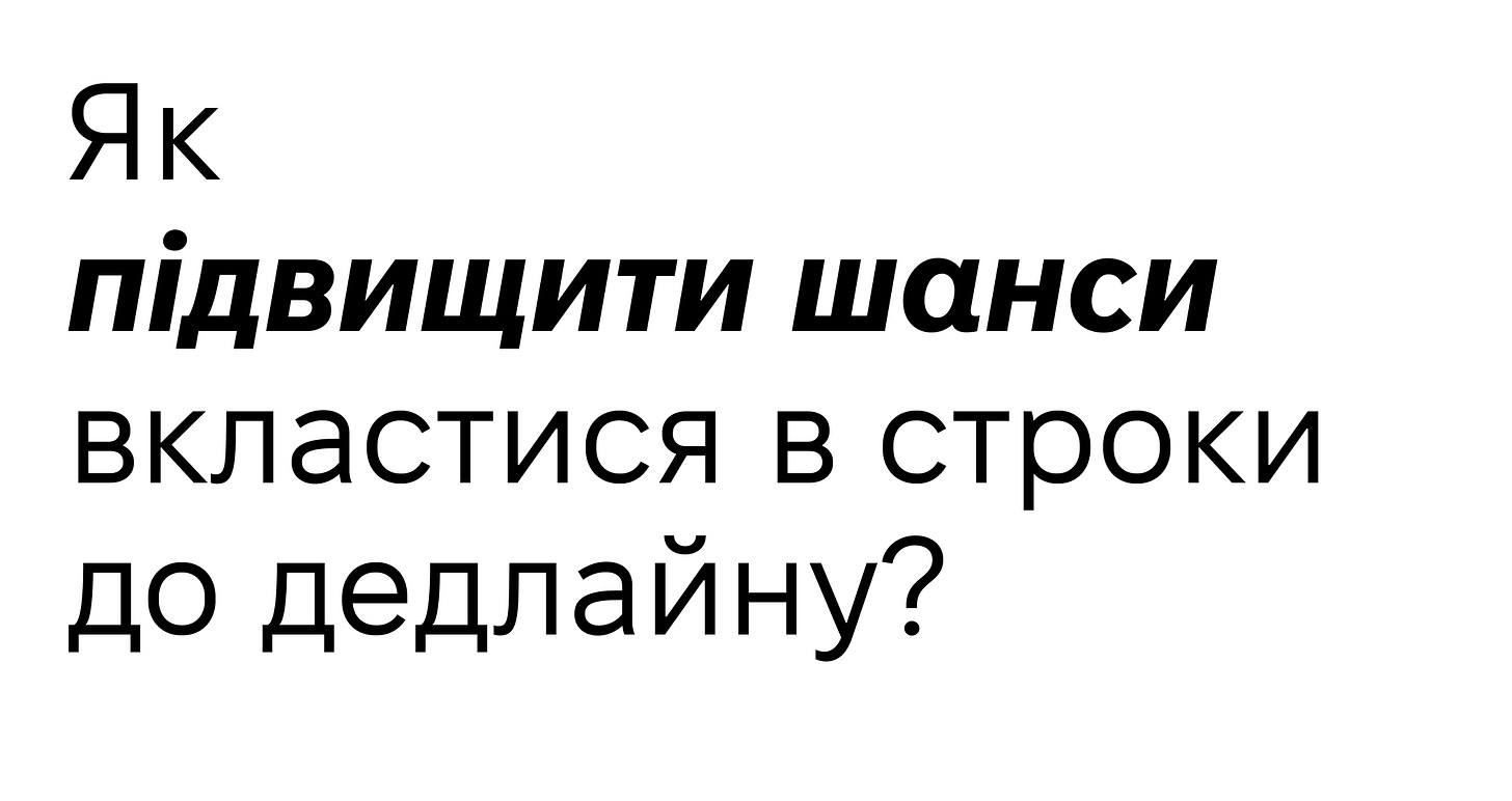 Ви, мабуть, зустрічали в своїй карʼєрі ситуацію, коли розуміння про неможливість вкластися в дедлайн формувалося саме в день цього самого дедлайну?